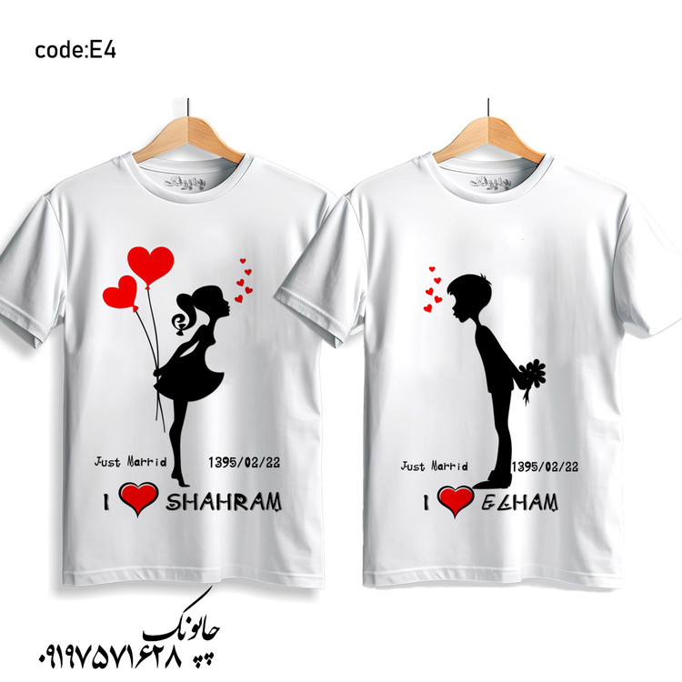 تیشرت ست دونفره عاشقانه رنگ سفید کدe4