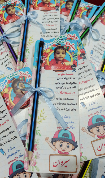 گیفت جشن اسم سایز 7.5در20سانت همراه مداد